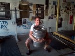 Cave Strong–Bear-hug keg squats with 124lb